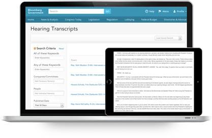 Get complete, verbatim transcripts of congressional hearings, markups, press conferences, key news events, and more – all in a day or less, with Bloomberg Government Transcripts.