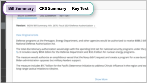 Get a simple breakdown of bills heading to the floor. Easily catch the differences between versions and across various states with AI-powered tools.