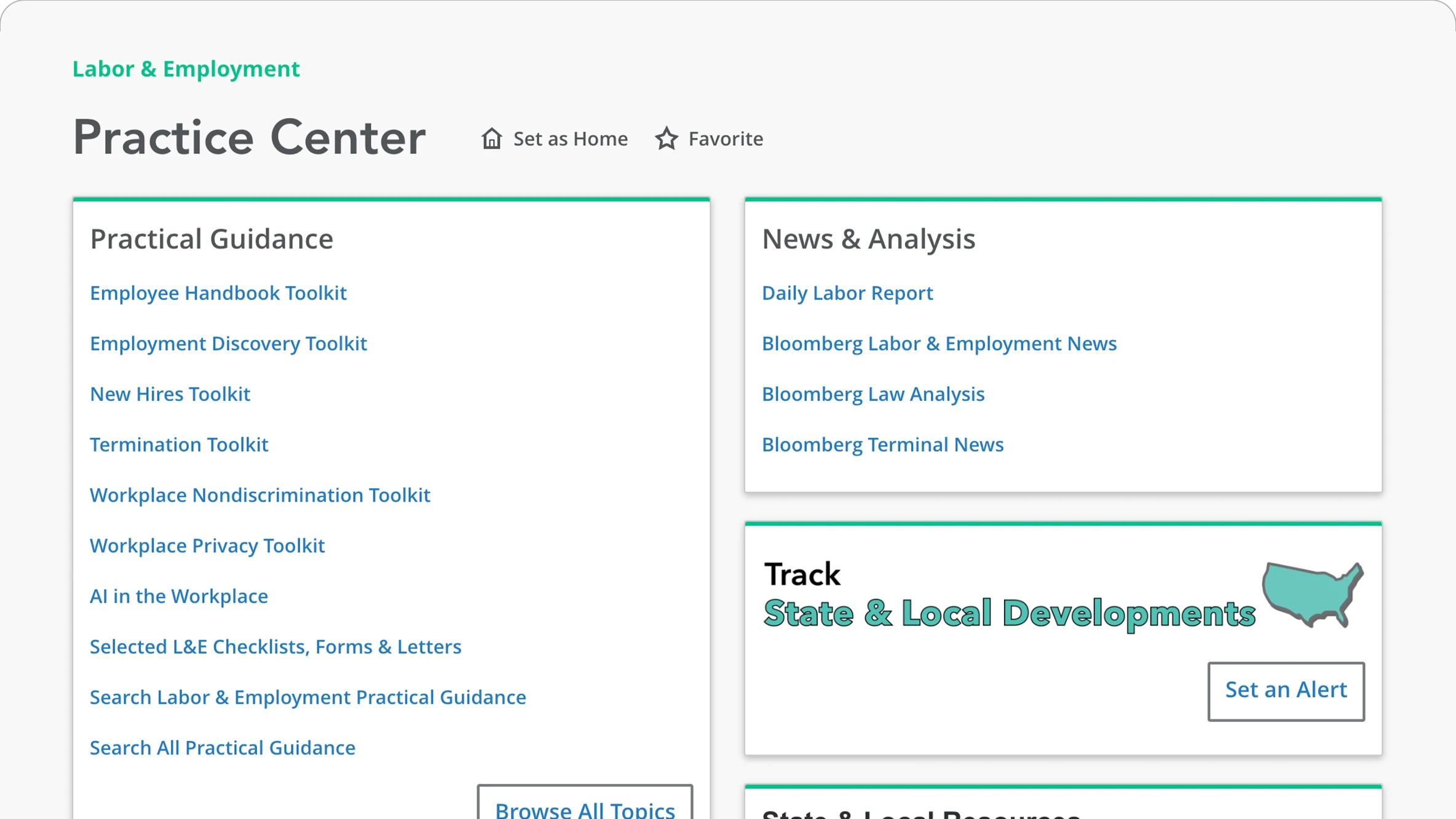 “For my area of practice, Bloomberg’s practice centers and treatise library provide highly relevant curated content that helps me find answers to my questions quickly.”