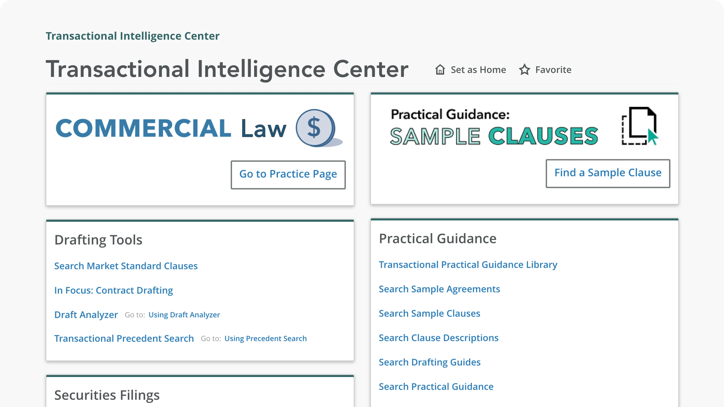 The Transactional Intelligence Center provides the tools and content transactional lawyers need to identify, document, and negotiate a deal. This all-in-one resource includes thousands of Practical Guidance documents, more than two million Precedent documents, A-Powered Draft Analyzer to ensure your deal’s language is market standard- now with Clause Adviser, trusted news, transactional reference library, and more.