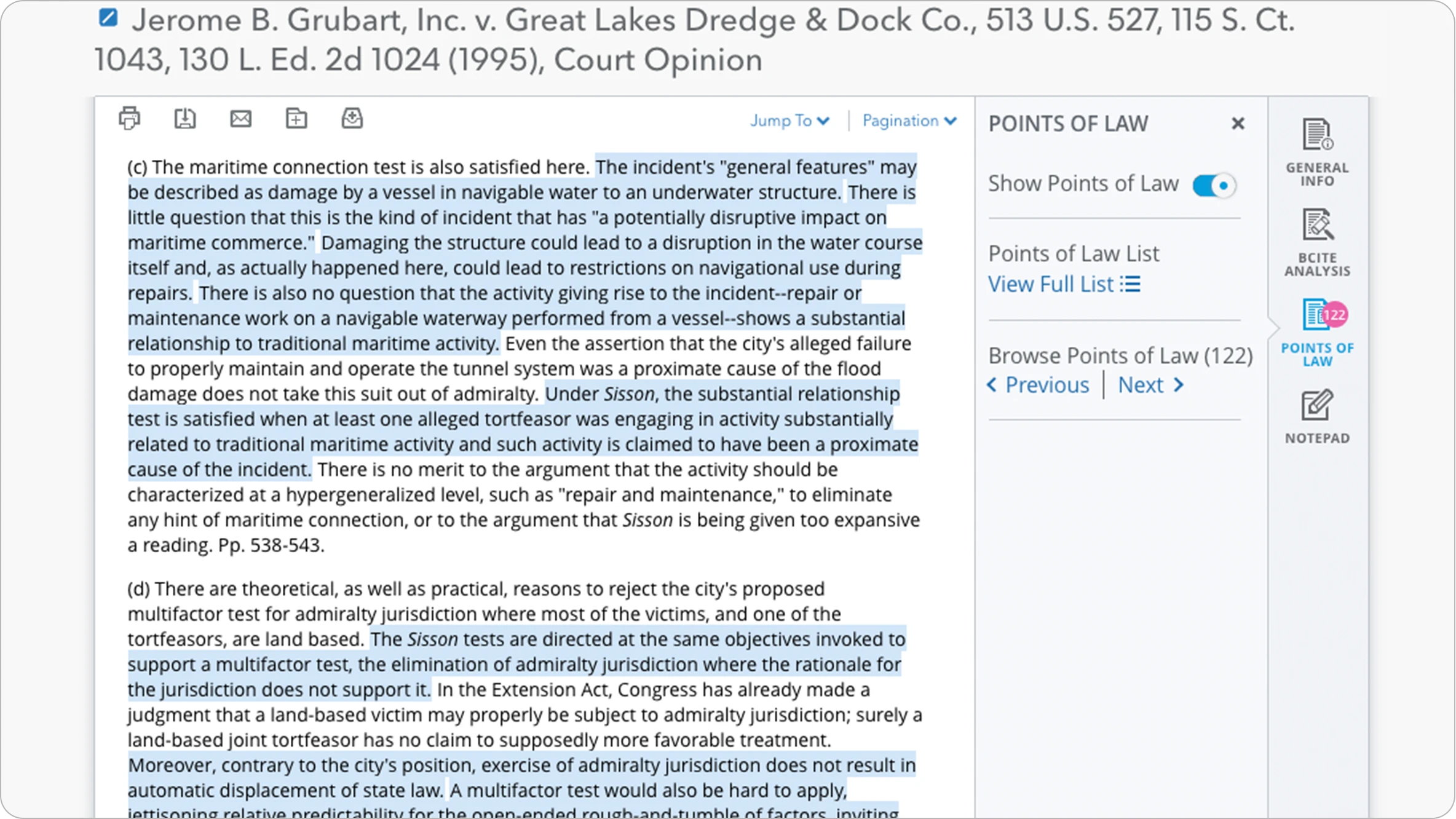 Our AI-powered case law research tool shortens research time by identifying legal principles and standards in court opinions, and helps you quickly pinpoint the best case for a particular Point of Law.