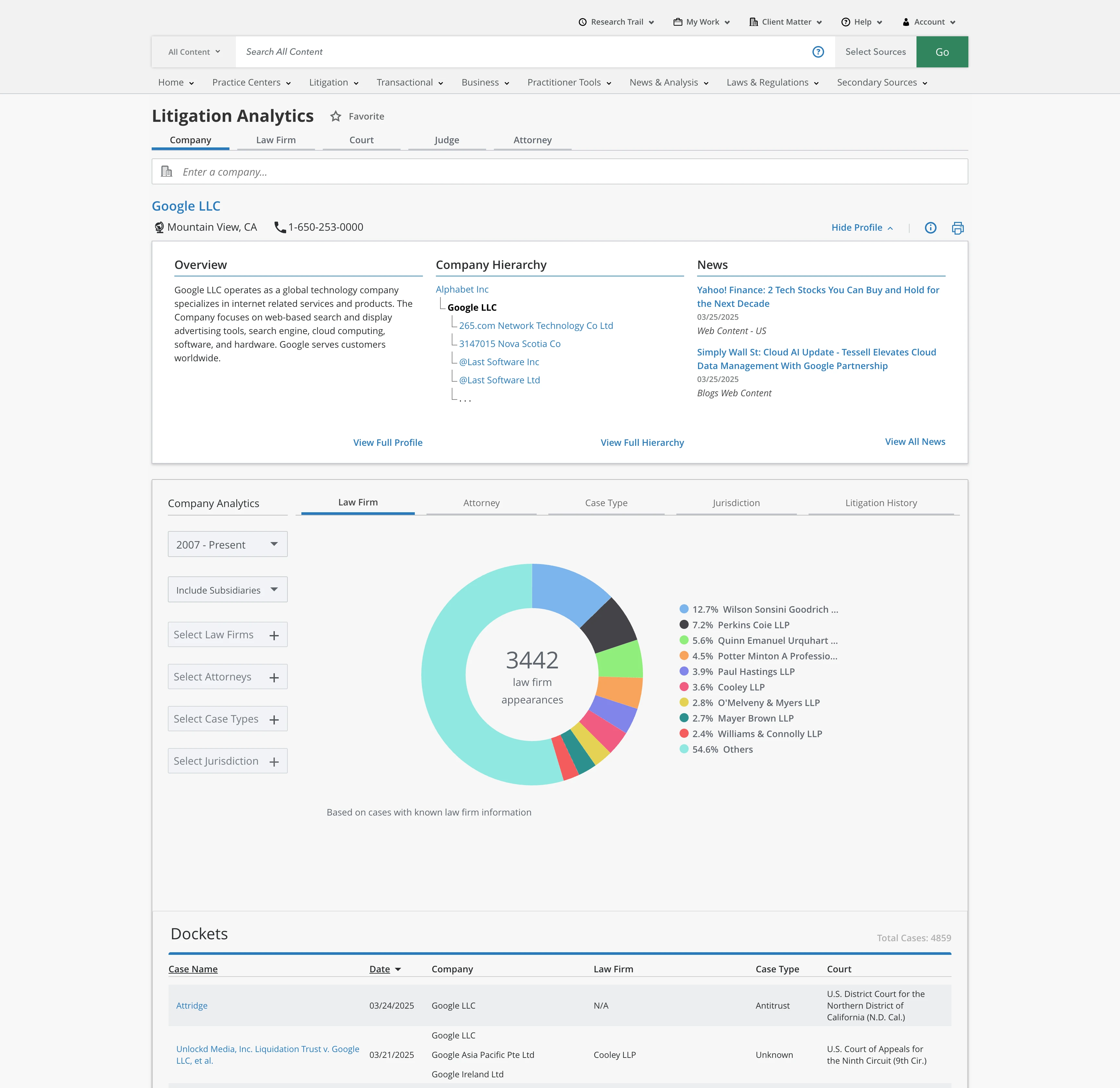 “Dockets are probably the reason we got the product firmwide. Our litigation practice is such that we needed really deep litigation research capability, and this ability to really scan a docket at a very, very granular level is unique to Bloomberg Law. Nobody else can do it.”